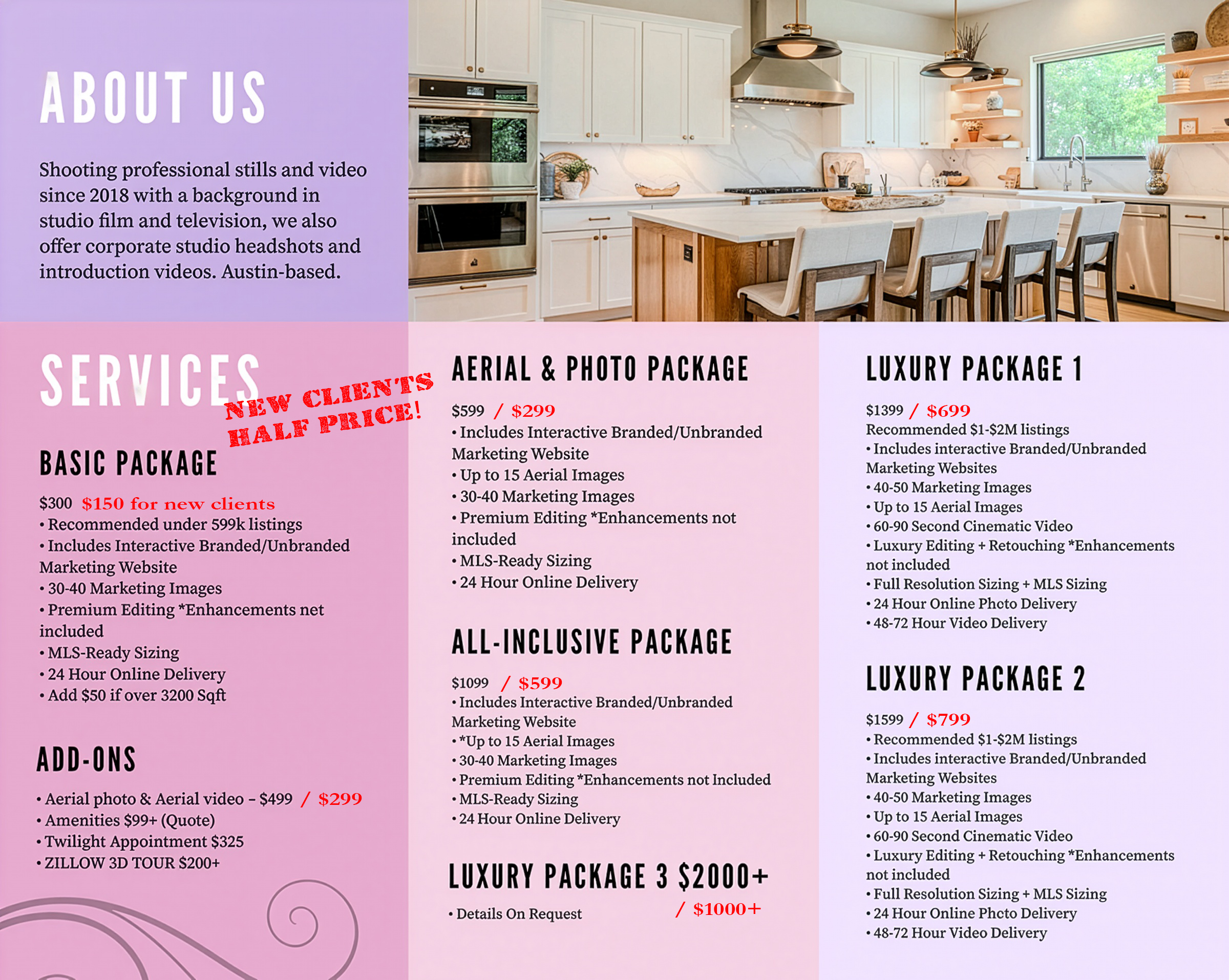 Showcasing Your Stunning Properties with Visual Expertise. Photography and videography services based in Austin, Texas.